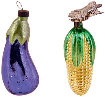 Вообще, в 1950-1960-х годах производство елочных игрушек процветало, проводились эксперименты с материалами, формой, тематикой. Мастера попробовали матовое покрытие и новую форму — шарик-прожектор (такие шары были популярны в Европе в 1930-1940-х годах). Продолжали выпускать украшения в виде овощей и фруктов. Кроме привычных кукурузы, помидоров, морковки появились артишок, инжир, земляника и редиска.