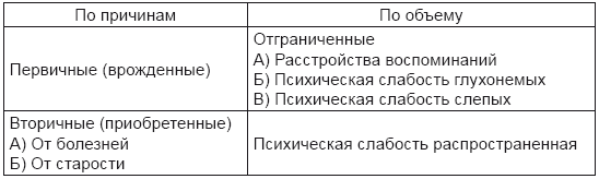 2. вследствие ослабления психических сил — слабоумие.