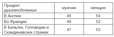 «Существуют какие-то особые факторы, особые биологические и социальные законы, в силу которых во всякой стране преобладает в населении некоторое количество душевнобольных женщин над числом душевнобольных мужчин; обратное же, по-видимому, всегда указывает на то, что перепись велась с какими-то значительными погрешностями, недочетами и неточностями».