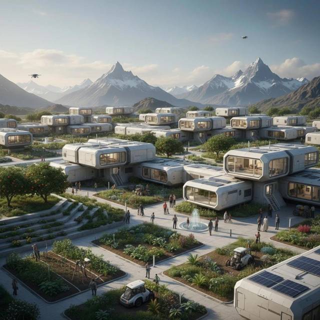 Через месяц Алекс снова стоял в зеленой долине на Терсике. Но теперь она выглядела совсем по-другому. Ряды модульных домов тянулись вдоль реки, между ними проложили дорожки из местного камня. Строительная техника работала с утра до вечера — люди в рабочей одежде устанавливали новые модули, прокладывали коммуникации, разбивали огороды.
