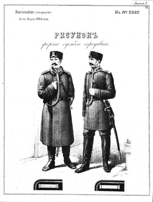 Рис. 24. Форма обмундирования городового городской полиции. Образцовый рисунок, 1884 г.