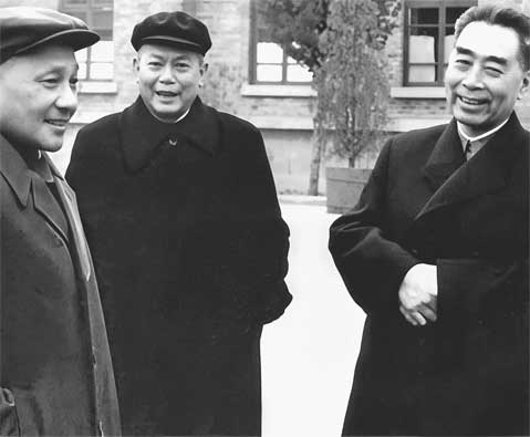 Одни из ведущих государственных деятелей КНР – Чжоу Эньлай, Ли Сяньнянь и Дэн Сяопин. 1963