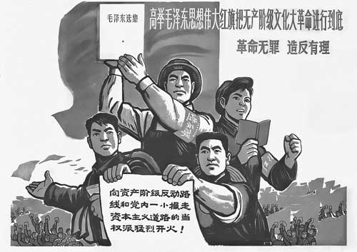 «Высоко нести красное знамя Мао Цзэдуна и проводить великую пролетарскую культурную революцию до конца – революция не является преступлением, и бунт оправдан!» – плакат 1966 года