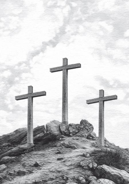 В пятницу утром Пилат также приговорил к смерти двух преступников. Кто они? В евангельских записях по этому поводу нет никаких подробностей. Возможно, сообщники Вараввы, которым не так повезло, а скорее всего, то были разбойники с большой дороги. Невиновного Иисуса распяли между ними («по ту и по другую сторону», пишет Иоанн). Пилат распорядился поместить Иисуса в центр, чтобы довершить комедию с царем иудейским: Иисуса в Его шутовской короне, словно свита, окружают два злодея.