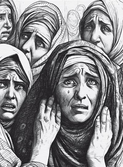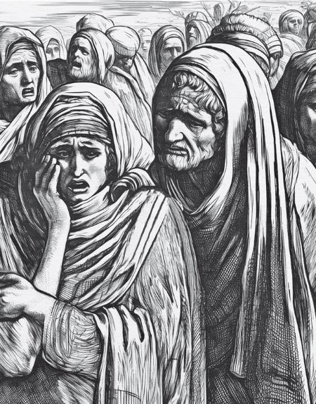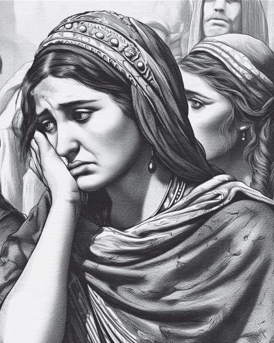 Охваченные горем Марфа и Мария сидят в своем доме в окружении гостей. Траур положено соблюдать в течение семи дней, и вот уже четыре дня, как вся деревня проводила носилки покойного. Когда стало известно о приходе Иисуса, Марфа бросается к нему навстречу: «Господи! если бы Ты был здесь, не умер бы брат мой. Но и теперь знаю, что чего Ты попросишь у Бога, даст Тебе Бог» (Ин. 11:21-22). Иисус отвечает: «Воскреснет брат твой». «Знаю, что воскреснет в воскресение, в последний день», – говорит Марфа, подтверждая свою веру в воскрешение мертвых в конце времен, как и считалось тогда в богобоязненных семьях. (Ин. 11:23-24)