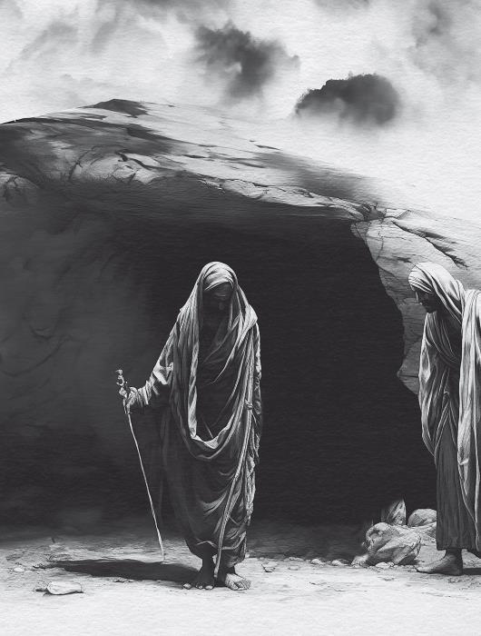 Семейная гробница находилась примерно в 100 м от деревни. Как и положено, она состояла из прихожей и погребальной камеры, вырытых в рыхлом известняке. Вход в камеру закрыт тяжелым камнем. По обычаю гробницы оставляли открытыми на три дня, чтобы семья могла попрощаться с покойным. Разложение тела начиналось быстро. Поэтому в конце третьего дня вход в гробницу закрывали камнем.