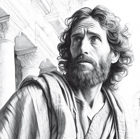 Во время допроса Петр стоит во внутреннем дворе, повествует Иоанн. Кто-то пристально смотрит на Петра и спрашивает: «Не из учеников ли Его и ты? Он отрекся и сказал: нет» (Ин. 18:25). Лука и Марк приводят одну деталь, которая, возможно, стала им известна из верного источника, то есть от самого Петра. Смотревший на него человек вроде бы добавляет: «Точно и этот был с Ним, ибо он Галилеянин» (Лк. 22:59), уточняя, что узнал это из-за его сильного северного акцента. «Точно и ты из них, ибо и речь твоя обличает тебя. Тогда он начал клясться и божиться, что не знает Сего Человека», (Мф. 24:73-74) – пишет и Матфей.
