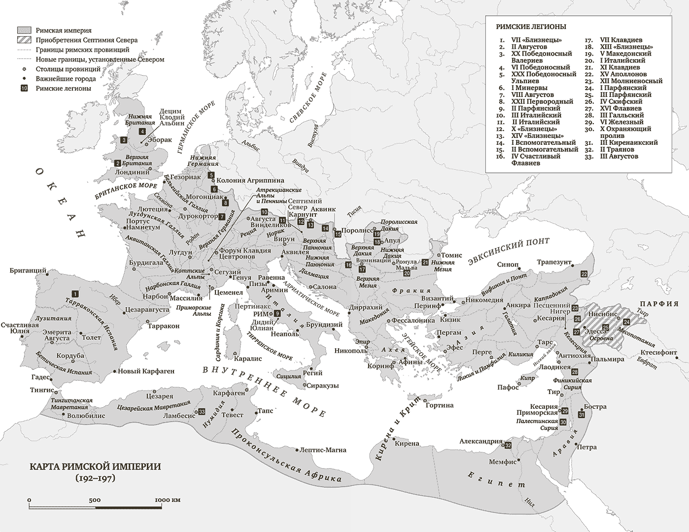 Le Gall, J., Le Glay, M. L’empire romain: Le Haut-Empire, de la bataille d’Actium à la mort de Sévère. Paris: PUF, 1987. (Ле Галь Ж., Ле Гле М. Ранняя Империя, от сражения при мысе Акций до кончины Севера)