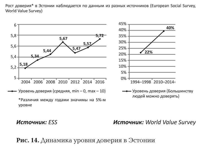 То есть это очень изменчивый фактор. Правда, есть и обнадеживающие результаты всемирного и европейского исследования ценностей, которые сравнивают динамику по разным странам. Так вот, соседней с нами республике – Эстонии – удалось за 15 лет в два раза поднять уровень доверия. В два раза!