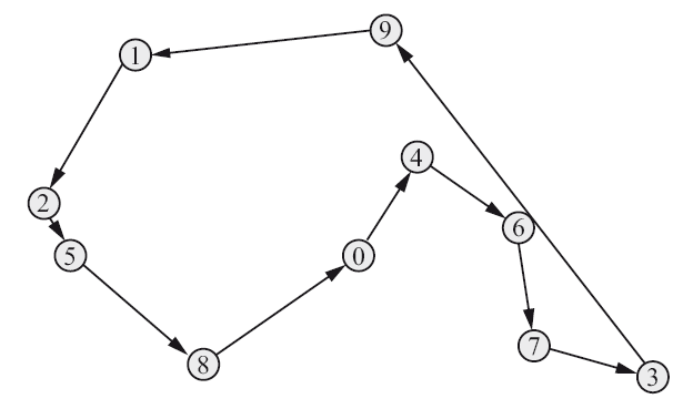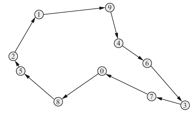 Рис. 4.4. Наилучшее решение для TSP из 10 городов (длина 11,86)