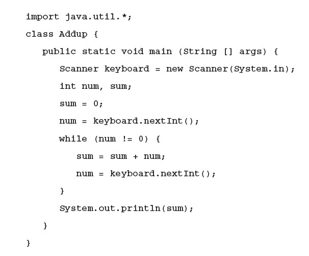 На рис. 5.5 показана программа сложения чисел на Java. Для нее потребовалось больше слов, чем в других языках, что вполне типично для Java, но ее получилось бы сократить на две-три строки, если бы я объединил несколько вычислений.