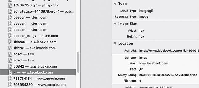 Такие однопиксельные изображения часто называют веб-жучками или веб-маяками. Создают их исключительно для отслеживания. Когда мой браузер запрашивает эту картинку с Facebook, тот ресурс узнаёт, что я смотрю на определенную страницу Toyota.com, и (если я разрешаю это) сбрасывает мне куки-файлы. Когда я посещаю другие сайты, каждая отслеживающая компания может составить представление о том, что я ищу. Если мои поиски в основном касаются машин, наблюдатели сообщают об этом потенциальным рекламодателям, и тогда мне начинают выводить объявления насчет автомобилей от дилеров, кредитов и аксессуаров. Если я заинтересуюсь несчастными случаями и купированием боли, мне будут показывать больше рекламы от ремонтных служб, юристов и терапевтов.