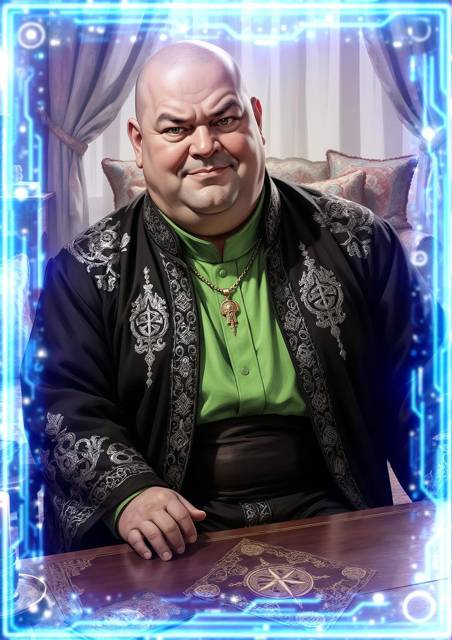 Хозяин всего этого великолепия восседал за столиком. Лысоватый полный мужчина лет пятидесяти был облачен в черный халат, расшитый серебряными узорами. Под халатом виднелась какая-то кислотно-зеленая нижняя рубаха. На шее висело ожерелье якобы из золотых самородков. Хотя, будь это действительно золото, у Маэстро голова бы уже отвалилась. Пухлые щеки и узкие прищуренные глаза делали его похожим на изображения восточных будд.