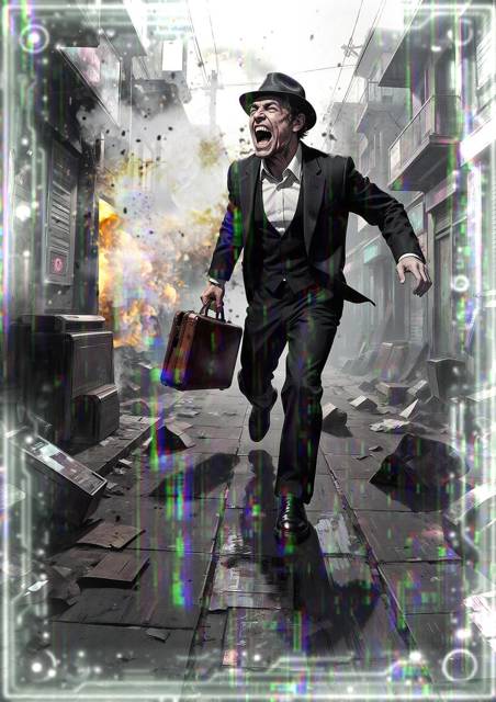 Из железной двери выскочил, прямо как в ви́дении, мужик в плаще, бронежилете и с чемоданчиком в руке.