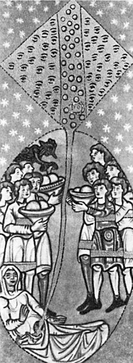 Рис. 8. «Шевеление плода в утробе». Из «Путей Господних» Хильдегарды Бингенской, рукопись XII столетия