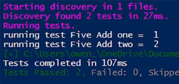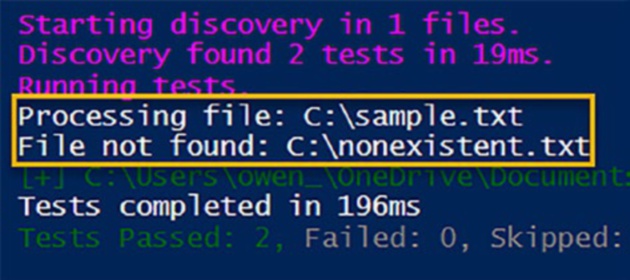 When running data-driven tests, as demonstrated in Listineviously, the output might leave us wanting more. While it informs us that tests were completed, the specifics of what each test evaluated remain elusive as shown in Figure .