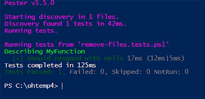 For instance, if you’re testing how your function handles a missing file scenario, you can set up the mock to always return “false” for Test-Path. This ensures that your function’s logic for handling missing files is thoroughly tested, without the need for actual files to be present or deleted during testing. The pester test calls your function, and your