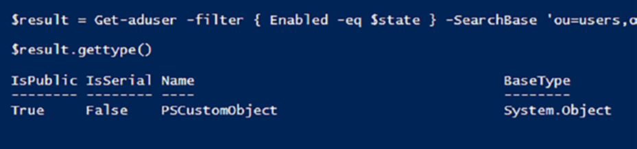 sculpture; you chisel away only what’s necessary to reveal the masterpiece within. Test-Path was easy; it returns a Boolean, and that’s it but take something like Get-ADUser, for instance; it spills out a treasure trove of properties, but maybe you need only a handful, so simply return the ones you need.