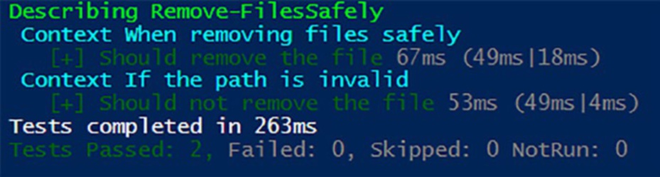 In the second It block, we test that when the file does not exist, the function should handle the missing file. Again, we use the Mock cmdlet to simulate Test-Path, and we expect the result to be False using