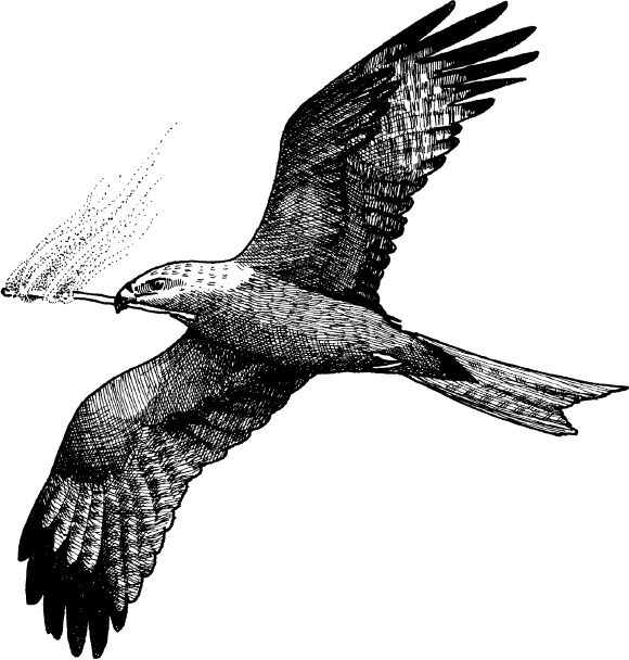 Так вот, некоторые хищные птицы – тоже пирофилы. Кормящиеся у огня хищные птицы действуют по тому же принципу, что и верветки. Из горящего кустарника выскакивают вкусные звери, которых легко поймать. Многие хищники питаются падалью, а в золе можно найти множество поджаренных мелких млекопитающих. Об этом поведении в научной литературе писали уже в 1941 г., и оно было замечено в самых разных частях света, включая Западную Африку, Техас, Флориду, Папуа – Новую Гвинею и Бразилию.
