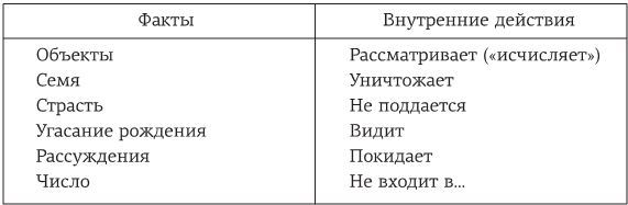 2.4.1. Все содержание этого отрывка можно разделить на две части. Одна часть представляет факты, существующие как таковые, а другая представляет действия, посредством которых Муни связывает или не связывает Cебя с этими фактами, как указано в Таблице I.