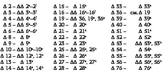Варианты: ΔΔ 2a, 6a, 8a, 10a, 12a–15a, 19a–23a, 25a–28a,