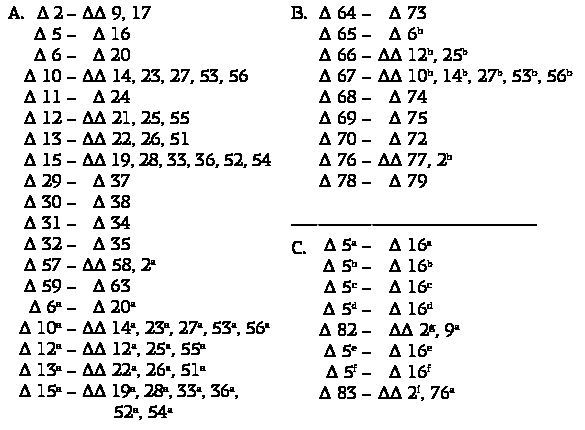 A ΔΔ 13–15, 19–24, 26, 28–52, 54, 59–63 [= 41 ΔΔ].