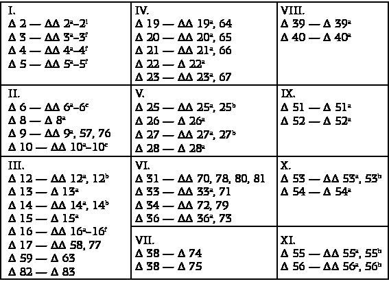 Д.13 [ΔΔ 1, 2a, 3–5, 6b, 7, 10b, 12b, 14b, 16, 18, 25b, 27b, 53b, 55b, 56b, 57, 58,
