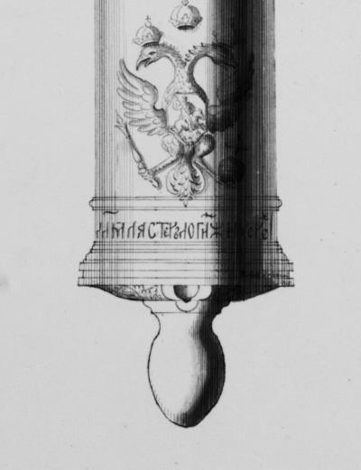 Обратим внимание, что в договоре с Гейгером 1698 г. говорилось об образце полкового орудия («един из трехфунтовых пушек, которая в 19 калибров», массой в 784 фунта, т. е. 19,6 пуда). 19 калибров для трехфунтовой пушки составляют 1444 мм, т. е. по русской мере это два аршина.