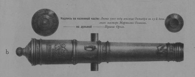 В 1692 году мастер М. Осипов создает крупнокалиберную пищаль «Орел». Орудие названо по изображению на дульной части крупного литого изображения двуглавого орла, увенчанного коронами. На стволе две надписи: «Пушка Орел», «лета 7201 году месяца сентября в 13 день. Лил мастер Мартьян Осипов». Торель украшена дубовыми листьями и лилиями, винград усыпан горошинами. В некоторых изданиях пушку «Орел» ошибочно датируют 1693 г. Калибр орудия составляет 180 мм, длина ствола 5 аршин (3556 мм). В настоящее время пищаль экспонируется в Московском Кремле (Инв. 25629 охр. Арт-740/1).