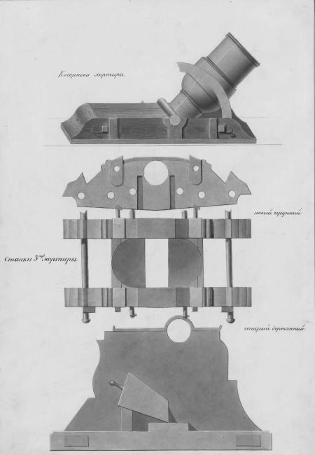 Кугорнова мортира и станок 3-пудовой мортиры.