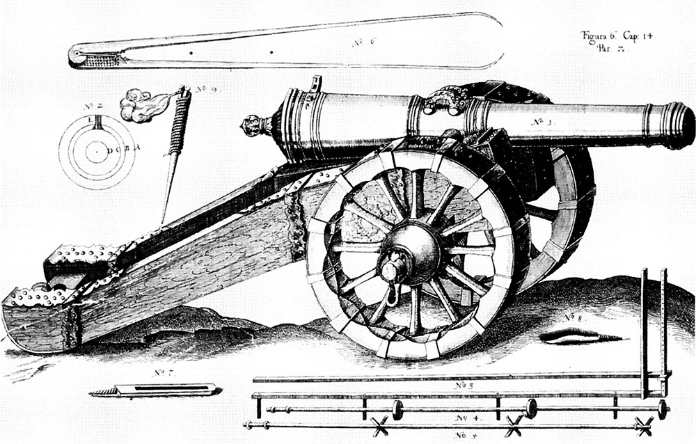 Илл. 27. 6-фунтовая полевая пушка с принадлежностями. Гравюра XVII в.
