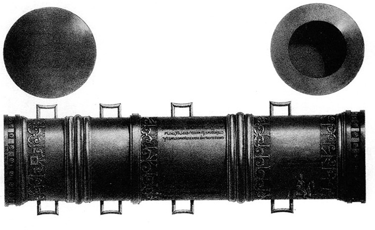 Таким образом, Царь-пушка являлась последним представителем гигантских осадных орудий – бомбард, которых к середине XVI в. уже не производили в Европе по причине чрезмерных затрат в материале, людских резервах, средствах доставки. Ствол Царь-пушки вполне мог выдержать стрельбу из 850–1000 кг ядер, но орудие никогда не стреляло по причине того, что не было просверлено запальное отверстие.