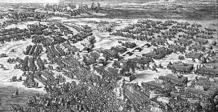 Укрепленные лагеря были еще одним видом полевых укреплений того времени. Обычай строить эти фортификационные сооружения, ведущий свои корни от Античности, в XVII в., по всей видимости, был подкреплен практикой войн Священной Римской империи против Османской империи. Как отмечал Монтекукколи, хотя турки отличались своим умением вести траншейные работы при осадах, они, в отличие от европейцев, не строили укрепленных лагерей в поле. Это было связано с тем, что стан турецкого войска, как правило, был очень обширным (якобы во всей армии не было человека, который бы спал под открытым небом, т. е. у всех, вплоть до последнего слуги, были палатки). Территорию такого размера было трудно обнести валами, и для ее обороны не хватало имевшейся у османов пехоты. Поэтому защиту лагеря возлагали на многочисленную турецкую и татарскую конницу. Европейцам же приходилось противостоять мобильным и многочисленным всадникам, чему помогали обнесенные валами, телегами и частоколами лагеря, защищаемые более дисциплинированной пехотой. В европейских войнах такие ретраншементы также широко использовались.