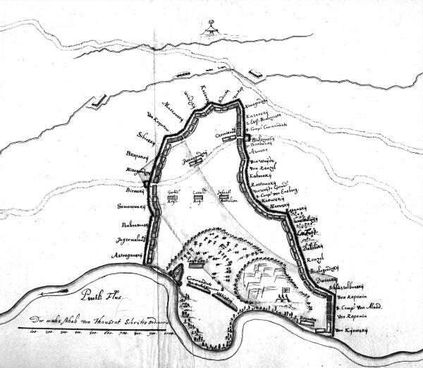 По-видимому, крупнейшее подобное сооружение русская армия построила в Гродно. Встать на зимние квартиры на сильной позиции у р. Неман для поддержки армии короля Августа было решено в сентябре 1705 г., и уже в октябре полки собрались на месте, выбранном А. Д. Меншиковым. Город был назначен местом сбора войск и укреплен на случай наступательных действий Карла XII. Гродно имел выгодное для обороны расположение – с южной стороны обрывистый берег реки практически не требовал искусственных укреплений, с запада – овраг с ручьем, на востоке пологие склоны и лишь на севере возвышенности невыгодно господствовали над лагерем. Обширная площадь лагеря, охватывавшего город с окрестностями, была окружена цепной линией укреплений, на некоторых участках – двойной, были также заняты крупные каменные строения. В целом гродненский лагерь был хорошо подготовлен – имел сильную перекрестную оборону склонов по фронту и особенно сосредоточенный огонь на угрожаемых участках. На этих позициях русским войскам под командованием короля Августа и фельдмаршала Огильви предстояло «держаться в оборонительном положении», что и пришлось делать вскоре. 14 января 1706 г. шведская армия по вставшему льду перешла Неман в трех верстах от города, оттеснила русских драгун к городу, простояла в боевом порядке перед городом ночь, затем приблизилась к городу на пушечный выстрел и имела трехчасовую канонаду с русскими полками, находившимися в своих ретраншементах. Несколько раз сменив позиции и обойдя Гродно с разных сторон, Карл так и не решился на штурм; не имея возможности продовольствовать свою армию рядом с городом, он отвел ее подальше и перерезал коммуникации с Россией. Запертая в таком положении армия Огильви (польский король покинул армию) за несколько месяцев понесла большие небоевые потери и покинула Гродно лишь 24 марта, совершив отступательный марш-маневр на Киев.