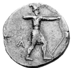 Рис. 17. Тетрадрахма (конец IV в. до н. э.). Слон и индийский лучник. Воспроизведено по: Holt F. L. Alexander the Great and the Mystery of the Elephant Medallions. Berkeley; Los Angeles; London, 2003. Pl. 8.