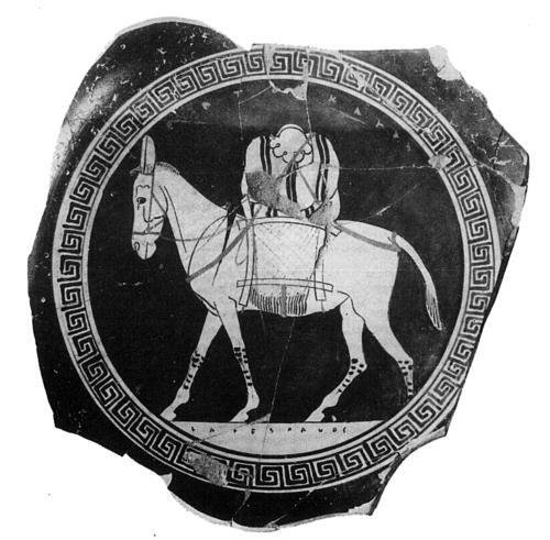 Рис. 40. Осел с поклажей. Аттический краснофигурный сосуд (начало V в. до н. э.). Музей изящных искусств в Бостоне. Воспроизведено по: Андерсон Дж. К. Древнегреческая конница ⁄ Пер. с англ. М.Н. Серафимова. СПб., 2006. Илл. 7.