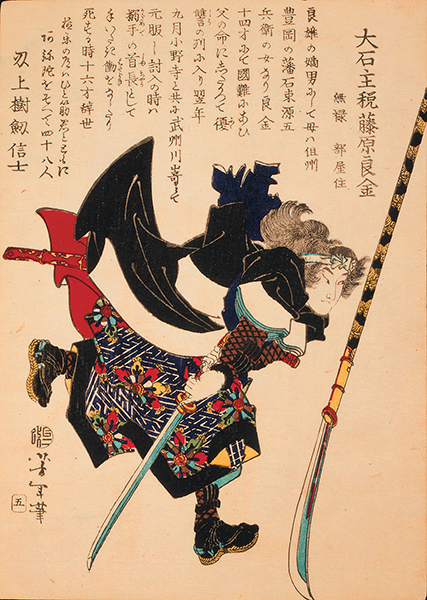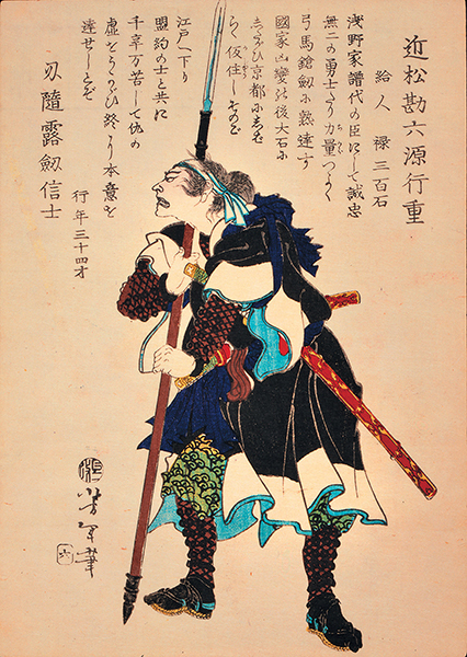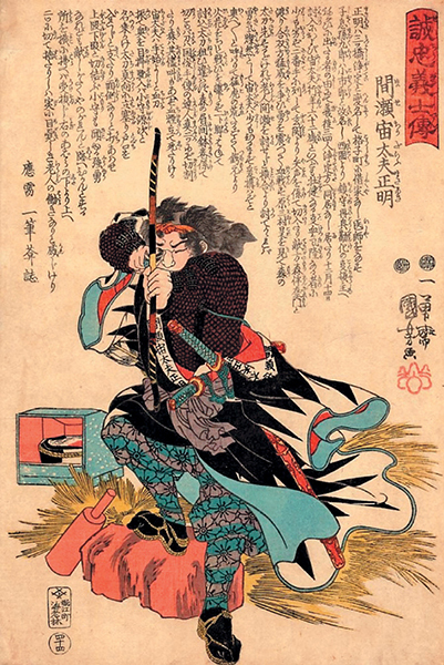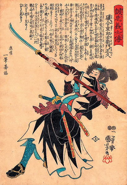 Исоаи Дзюроэмон Масахиса, делающий выпад нагината. Утагава Куниёси. XIX в.