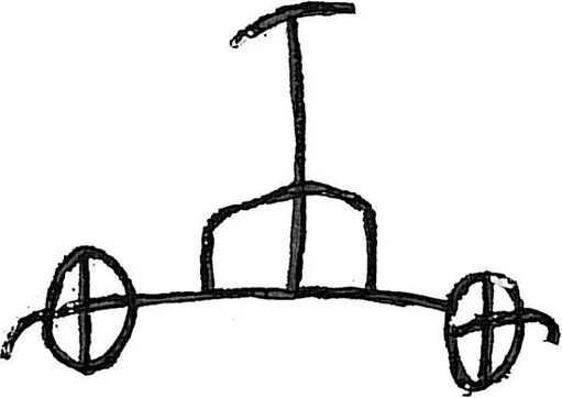 Распряженная колесница. Петроглиф. Уэд Ларьяр (Lar’ar), Южный Оран, Алжир. «Эпоха лошади» (I тыс. до н. э.).