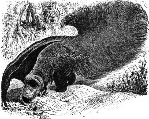 Величайший вид – гривистый муравьед (Myrmecophaga jubata), называемый в Парагвае – иуруми, в Суринаме – таманоа, покрыт густым, упругим, жестким на ощупь, щетинистым мехом, образующим на спине гриву (до 24 см), а на хвосте удлиненным до 40 см. Затылок, спина и бока – пепельно-серого цвета с черным, остальная часть тела – черно-бурая. Длина – до 1,3 метра, длина хвоста с волосами – до 95 см. «По внешности иуруми, – говорит Ренггер, – очень некрасив. Его голова имеет форму длинного, тонкого, несколько согнутого вниз конуса и оканчивается маленькой тупой мордой. Рот имеет вид щели, в которую, – самое большее, – может войти толстый большой палец мужчины. Тело велико, неуклюже и несколько приплюснуто сверху вниз; конечности коротки, передние – широки и очень мускулисты, снабжены четырьмя пальцами, на которых находятся толстые когти, сжатые, подобно когтям орла. Коготь на первом, или внутреннем, пальце – в 4,5 см длиной. Задние конечности слабее и снабжены пятью пальцами, когти которых всего 1–2 см длиной. Тонкий язык может высовываться на 3/4 аршина…»