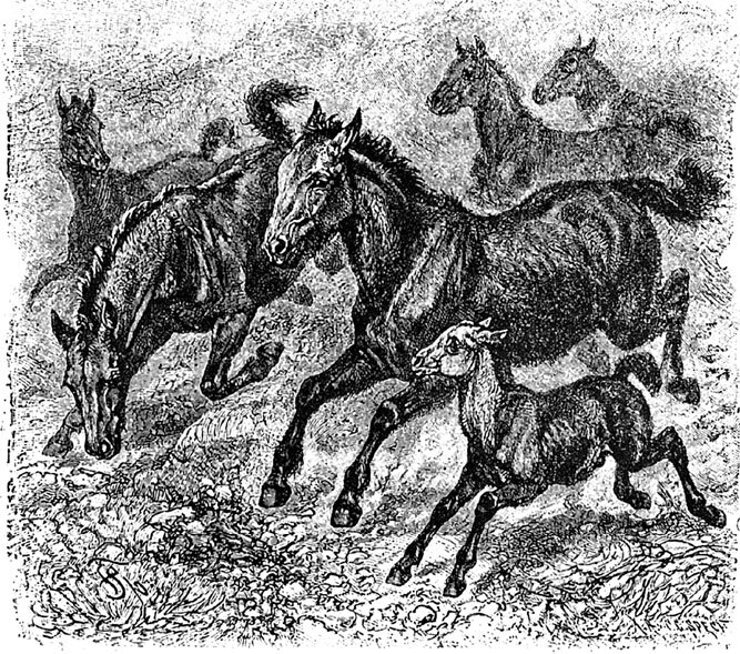 Неизвестно, где и когда люди впервые приручили лошадей. Теперь почти везде они – домашние животные; только в привольных степях Средней Азии и пампасах Южной Америки до сих пор еще рыщут многочисленные стада диких лошадей, да и то в последней стране они произошли от домашних и уже на свободе одичали.