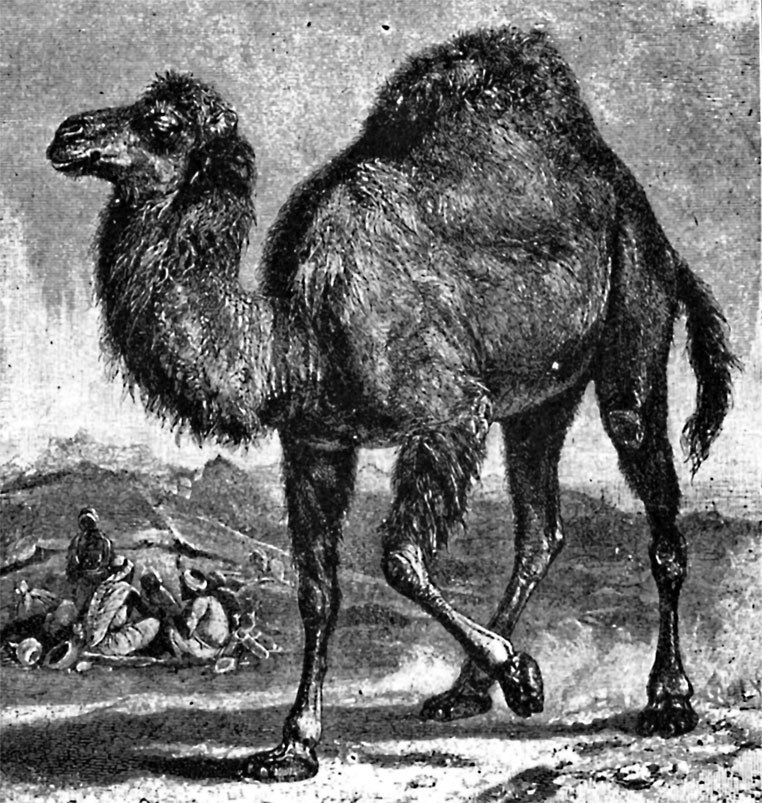 Дромадер (Camelus dromedarius), без сомнения, полезнейшее из всех домашних животных в Африке, но в то же время это самое неприветливое, глупое, упрямое и неприятное создание, какое только можно себе вообразить. В среднем он 2–2,3 м высотой и 3–3,3 м длиной от морды до конца хвоста, причем верховые арабские верблюды представляют собой стройных животных, вьючные же – неуклюжи, как водовозные клячи.