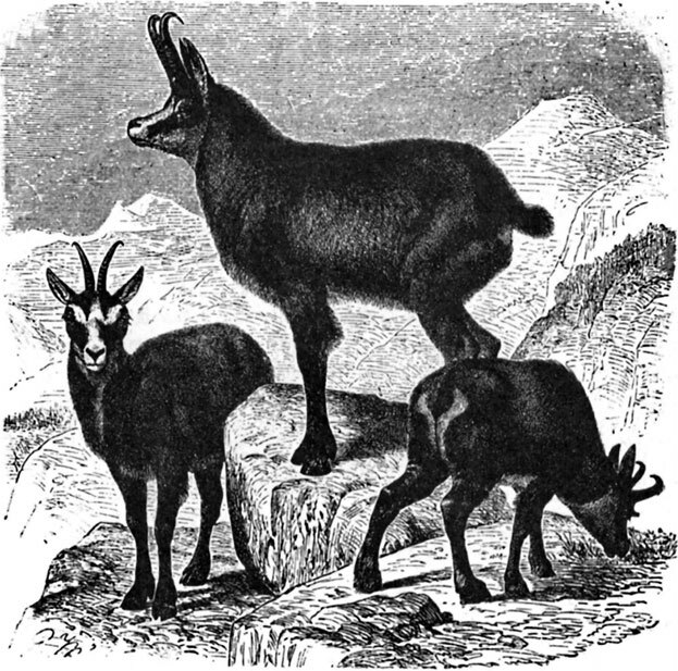 Альпийский козерог, когда-то широко распространенный в Европе, а теперь чрезвычайно редкий, гордое, стройное и видное животное, с телом в 1,6 м длиной, до 85 см высотой и до 6 пуд. весом. Крепкие сильные рога его достигают длины 1 1/2 арш., при 30–35 фун. веса; у самки – гораздо меньше. Мех, довольно грубый и густой, летом имеет рыжевато-серую окраску, зимой – желтовато-серую или чалую. Никакое другое жвачное, кажется, не способно жить на таких крутых и высоких горах. «Какие смелые и быстрые прыжки делают козероги с одного утеса на другой, – говорит Геснер, – трудно даже поверить. Где есть хоть малейшая точка опоры для его расщепленных и острых копыт, там он не видит никаких препятствий для достижения в несколько прыжков любого утеса, как бы высок он ни был и как бы далеко ни отстоял от другой скалы». И действительно, козерог бегает быстро и неутомимо, карабкается по горам с удивительной ловкостью и с невероятной быстротой взбирается на самые крутые утесы.