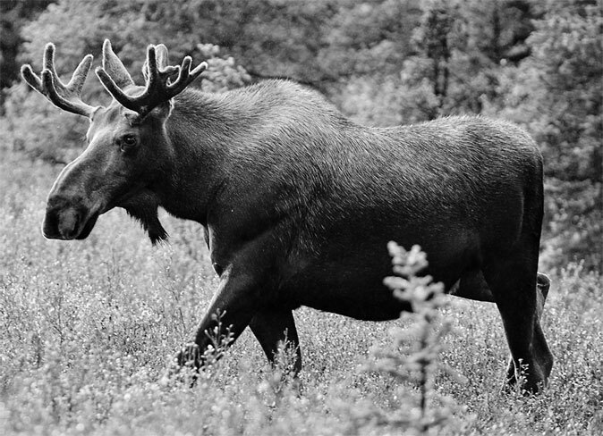 Между всеми сухопутными животными Европы лось (Alces palmatus), несомненно, занимает первое место по своей величине. До полутора сажен длиной, более 2 аршин высотой и более 30 пудов весом, это млекопитающее является настоящим великаном среди оленей, к семейству которых его относит систематика. Наружность лося – довольно неказиста; особенно некрасиво выглядит голова – большая, вытянутая, оканчивающаяся длинной, толстой, спереди как бы обрубленной мордой, которая обезображена еще хрящеватым носом и сильно выдающейся, морщинистой верхней губой. Даже рога не красят лося: большие, тяжелые, широкие, плоские, в виде лопат, они совсем не производят того впечатления, как легкие, грациозные, стройные рога настоящих оленей. Самки лосей рогов не имеют.