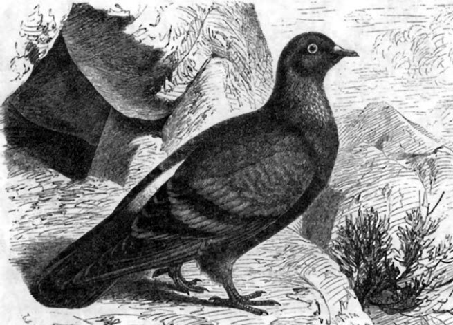 Самый важный для человека – это дикий полевой голубь, сизяк (C. livia), который считается прародителем нашего домашнего голубя; он почти весь голубой, только нижняя часть спины белая, а по крыльям проходит темная полоса. Область его распространения ограничивается несколькими северными европейскими островами, берегами Средиземного моря и Южной Азией. В окрестностях Триеста они живут повсюду в подходящих местах, именно на горе Карст, в подземных углублениях; в Далмации, Италии, Греции и М. Азии – на скалах у самого моря и на высочайших горах. В Египте я видел их на отвесных скалах, вблизи быстрых потоков, но попадались мне большие стаи и среди пустыни; в Индии сизяк принадлежит к числу самых обыкновенных птиц.