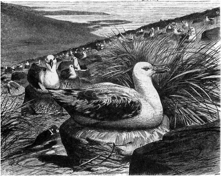 Относительно размножения альбатросов вполне достоверных сведений пока мало, зато нет недостатка в различных баснях. Для постройки гнезда альбатрос выбирает склоны холмов; оно состоит из камыша и сухих листьев, скомканных вместе, и имеет в окружности внизу около 2 метров, а вверху около 70 см. Обыкновенно кладется всего одно яйцо, высиживаемое самкой очень терпеливо; она никогда не решится покинуть гнезда до тех пор, пока ее к тому не принудят.