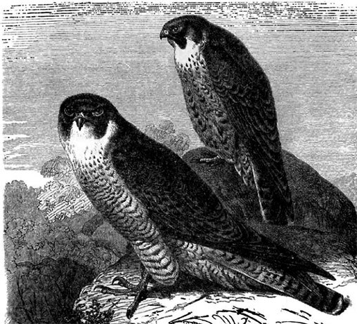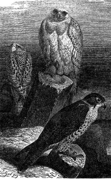 Первое место среди всех хищных птиц занимают благородные соколы (Falco). Сила и ловкость, смелость и отвага, благородная осанка и высокая понятливость – вот постоянно бросающиеся в глаза черты этих птиц. Полет их превосходен благодаря поразительной быстроте, продолжительности и ловкости; при нападении сокол кидается со значительной высоты на землю, и притом с такой стремительностью, что не удается различить его форм. Однако на земле он чрезвычайно неловок, беспомощно прыгает обеими ногами и иногда, чтобы подвинуться вперед, вынужден прибегать к крыльям.