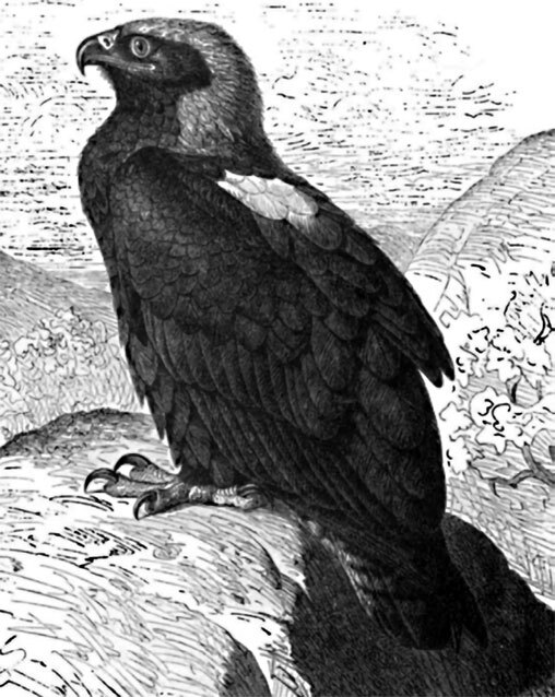 Орел-могильник (A. melanaetus) значительно меньше беркута. Основной цвет оперения старой птицы темный желто-бурый. Область распространения этого орла простирается от Венгрии до Китая.
