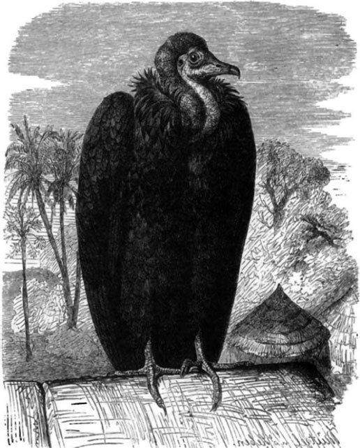 На окраине пустыни лежит издохший верблюд. Трудности путешествия изнурили его, и он, совершено изможденный, упал, чтобы больше не вставать. Его хозяин оставил его лежать нетронутым, так как обычаи страны запрещают ему употреблять в свою пользу самую незначительную часть умершего или даже убитого без обычных церемоний животного. На следующее утро над ближайшей горной вершиной показывается ворон; зорким глазом он замечает добычу, осторожно обходит кругом нее несколько раз, боязливо осматриваясь. Другие вороны следуют его примеру, и вскоре скапливается значительное число этих вездесущих птиц. Затем появляются и другие хищники: коршун-паразит и стервятник описывают над падалью круги; приближается орел, но начинателей пира еще нет. Раньше прибывшие гости хотя клюют тут и там павшего зверя, но его толстая шкура слишком тверда для их клювов, чтобы они в состоянии были оторвать себе большие куски. Вот и десять часов. Хорошенько выспавшись, большие члены этого семейства покидают один за другим место своего ночлега. Заметив в долине сборище, гриф тотчас же соображает, что добыча найдена. С шумом падает он вниз с необыкновенной высоты и, наверно, убился бы до смерти, если бы вовремя не раскрыл сложенные крылья, чтобы остановить падение.