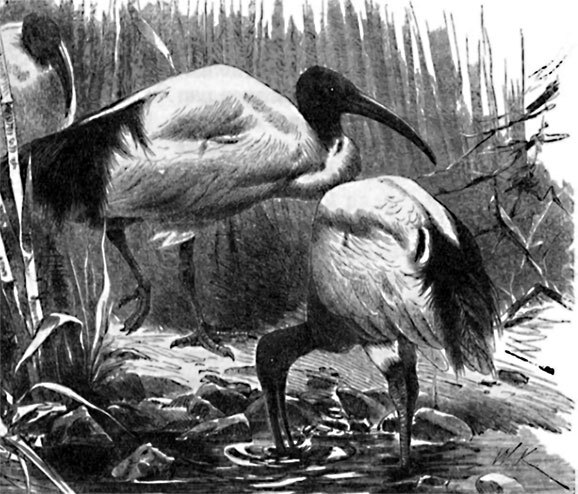 Весьма вероятно, что ибисы поедают маленьких змей, но я не думаю, чтобы они решались нападать на крупных и более опасных. В период дождей пища их состоит главным образом из насекомых; на пойманных экземплярах я наблюдал, что хотя они охотно едят мелких гадов, но все же предпочитают им насекомых.